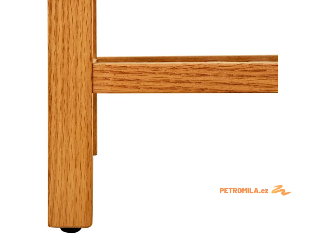 Tento dřevěný botník byl precizně vyroben z odolného masivního dubu a je velmi funkční. Vzhledem ke svému kompaktnímu designu a rukojetím zabere jen velmi málo místa a dá se snadno přemisťovat. Otevřené police jsou ideální pro dobré větrání vašich bot. S tímto botníkem už se nebudete muset rozčilovat, že máte boty rozházené po celém domě.