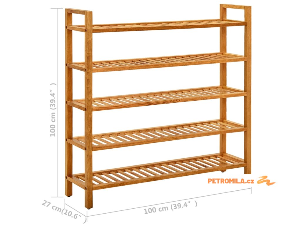 Botník s 5 policemi 100 x 27 x 100 cm masivní dubové dřevo