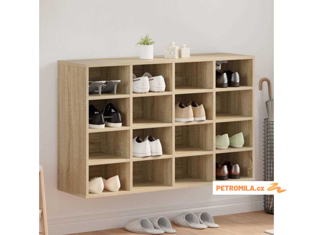 - Odolný materiál: Tahle skříň na boty je vyrobená z kompozitního dřeva, které je odolné a snese každodenní používání, zatímco si drží svůj elegantní vzhled. Tento robustní materiál je trvalým řešením pro uložení bot ve vaší chodbě.