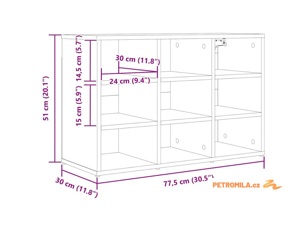 - Celkové rozměry: 77.5 x 30 x 51 cm (D x Š x V)