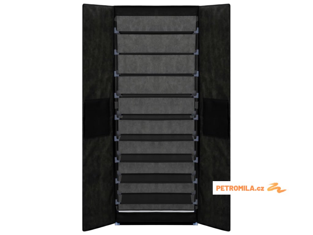 S naším botníkem s 10 policemi už nebudete po celém domě zakopávat o boty. Do jeho 10 polic snadno uložíte až 30 párů bot, takže všechna vaše obuv bude krásně uspořádaná a na jednom místě. Potah z netkané látky skryje vaše boty před pohledem a ochrání je před prachem. Botník je navíc velmi lehký, takže jej v případě potřeby můžete bez námahy přesouvat.