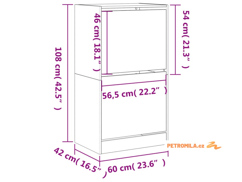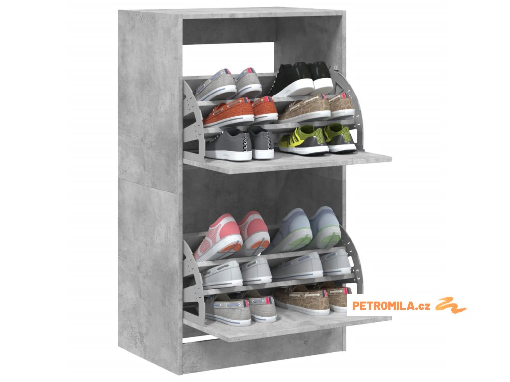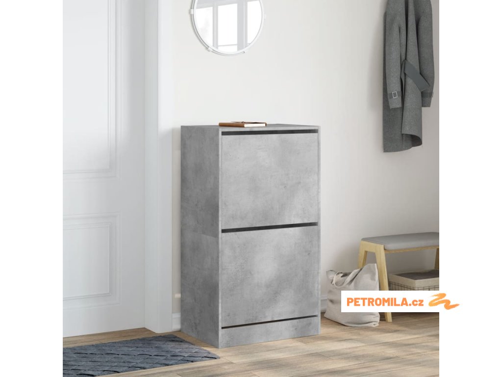 Botník se 2 výklopnými zásuvkami betonově šedý 60 x 42 x 108 cm