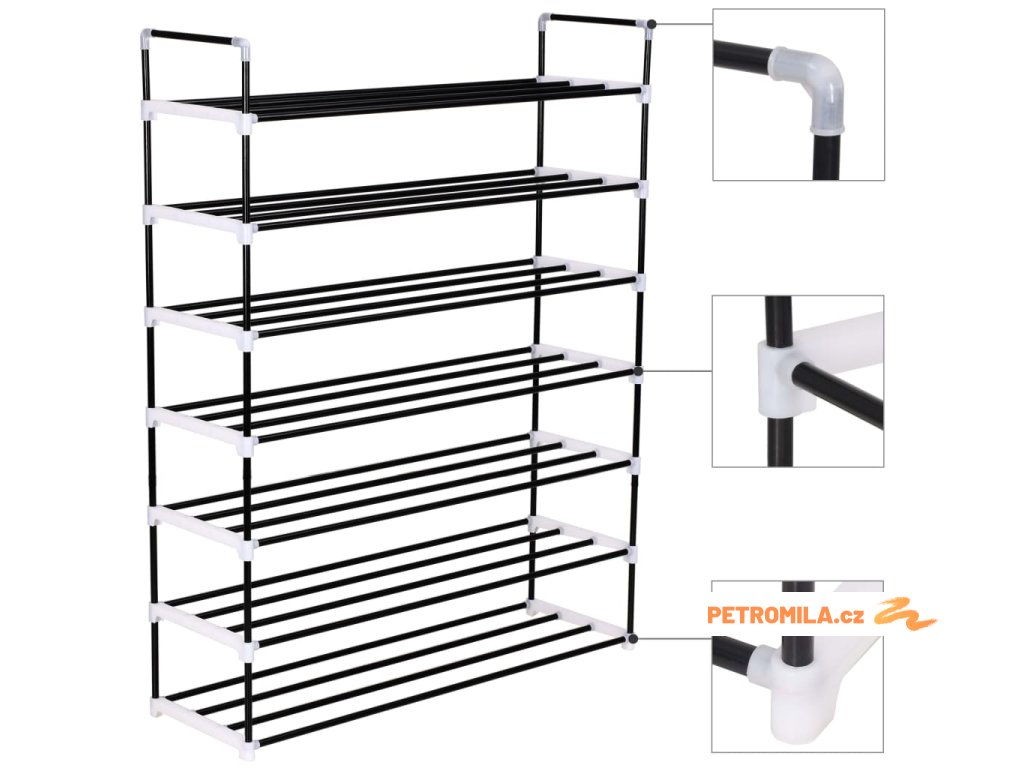Disponuje lehkým kovovým trubkovým rámem, botník lze tedy snadno přesouvat a zároveň je dostatečně odolný. Má sedm prostorných polic, které vám poskytnou spoustu prostoru pro organizované ukládání vašich bot tak, aby vám nepřekážely.