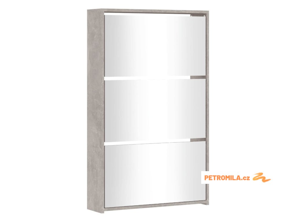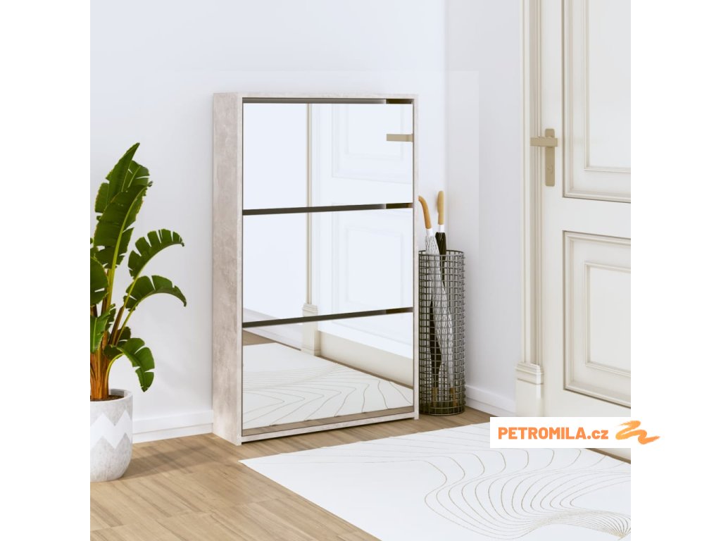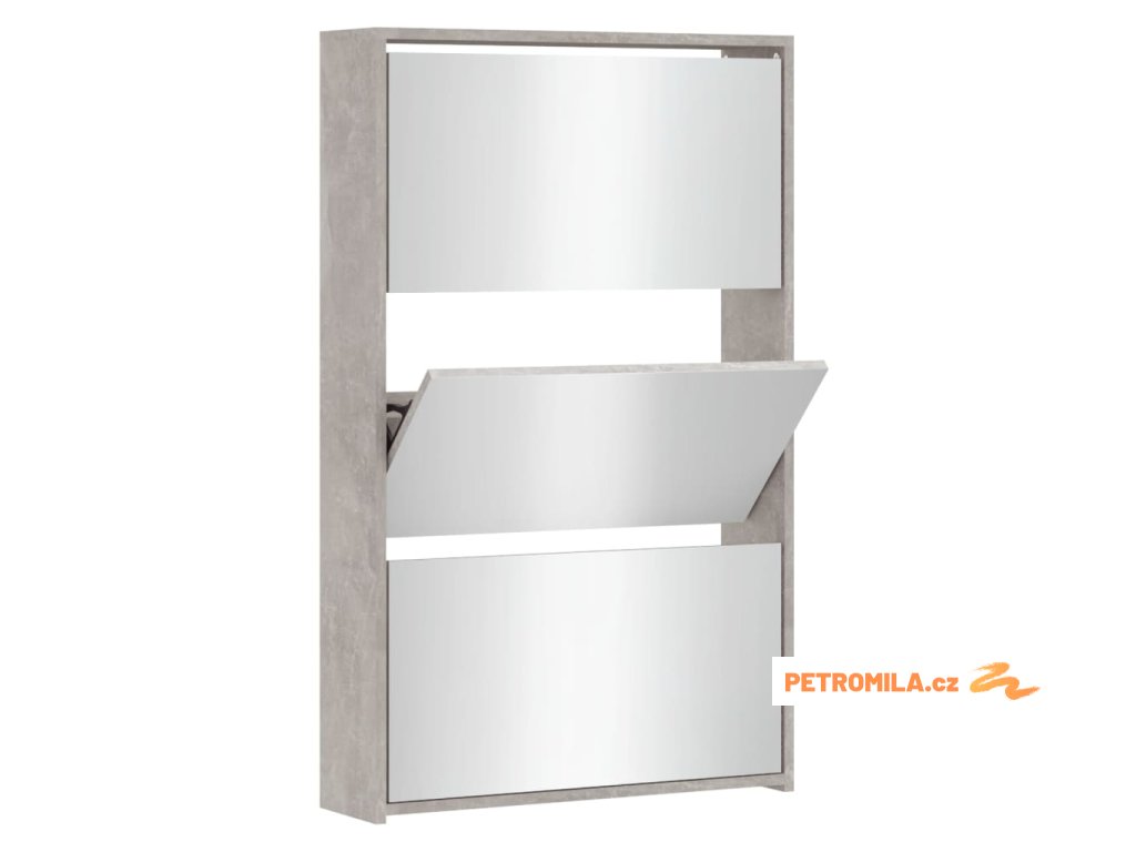 Botník se zrcadlem 3patrový betonově šedá 63x17x102,5 cm