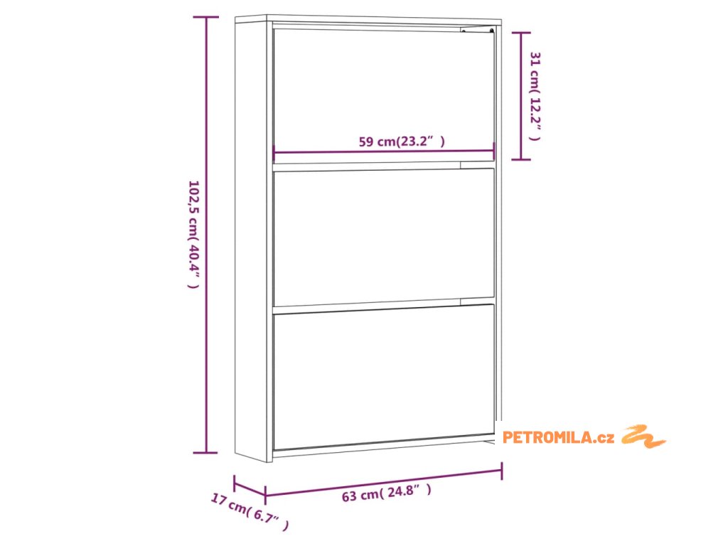 - Rozměry: 63 x 17 x 102,5 cm (Š x H x V)