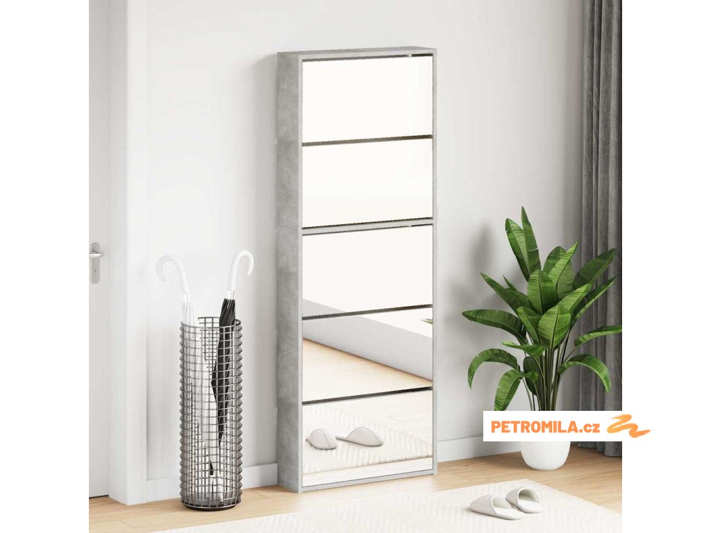 Botník se zrcadlem 5patrový betonově šedý 63 x 17 x 169,5 cm
