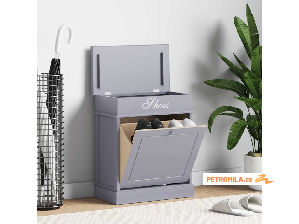 Skříňka je vyrobena ze dřeva pavlovnie, je tedy mimořádně odolná a stabilní. Velká vyklápěcí přihrádka je opatřena příčnými tyčemi, aby vše zůstalo na svém místě. Horní deska botníku se navíc dá odklopit, takže si do horní přihrádky můžete uschovat různé doplňky k obuvi, jako jsou tkaničky, vložky do bot a další maličkosti. Sestavení našeho botníku je snadné.