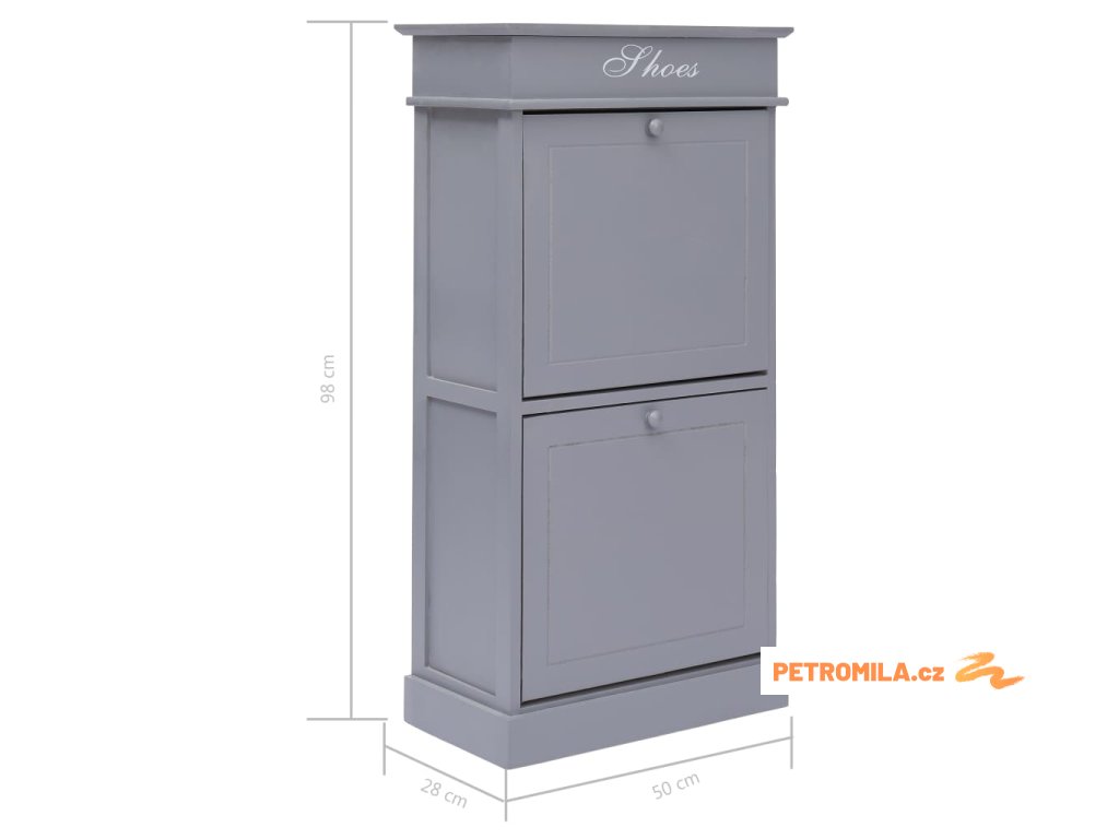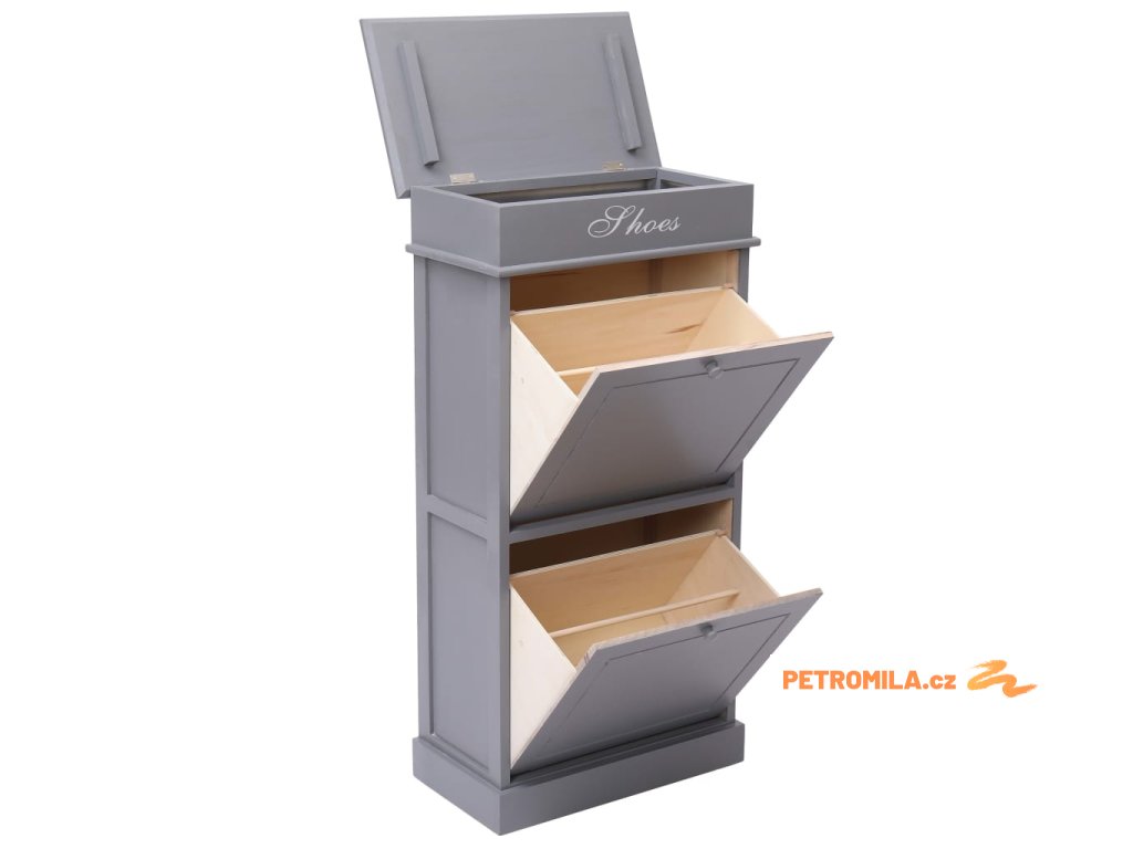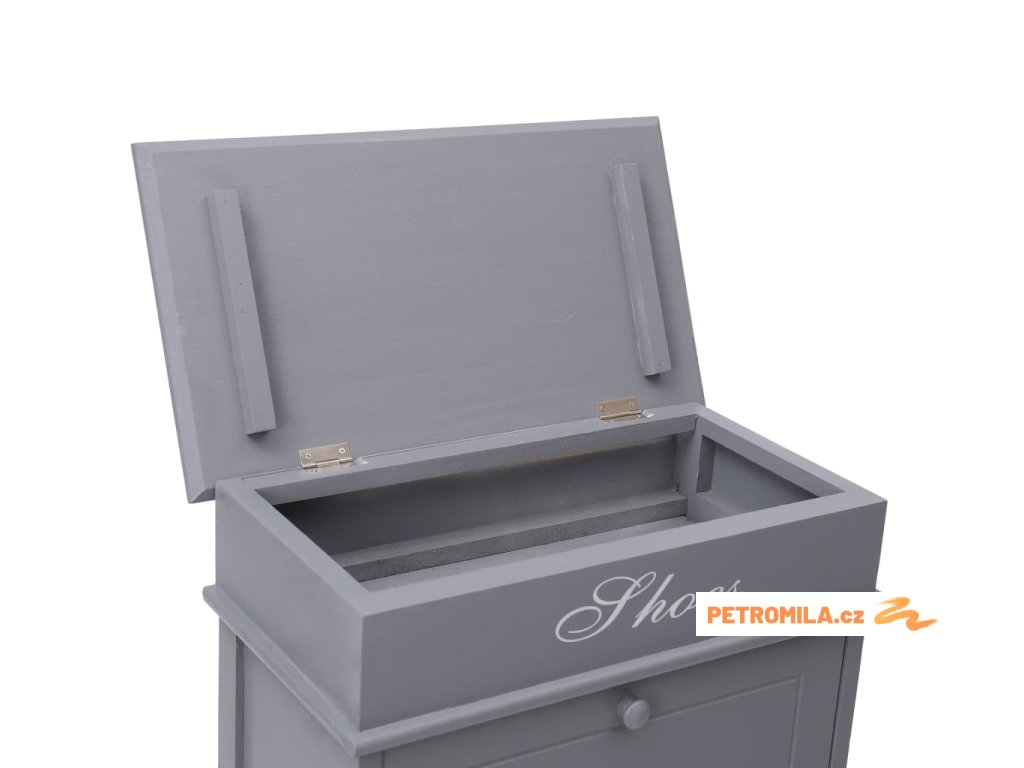 Dvě velké vyklápěcí přihrádky jsou opatřeny příčnými tyčemi, aby vše zůstalo na svém místě. To znamená, že si své boty můžete uspořádat, jak vám to vyhovuje, dobře na ně uvidíte a kdykoli je budete moci snadno vytáhnout. V botníku lze uložit až 10 párů bot, aniž by se na ně prášilo. Horní deska botníku se navíc dá odklopit, takže si do přihrádky pod ní můžete uschovat různé doplňky k obuvi, jako jsou tkaničky, vložky do bot a další maličkosti.