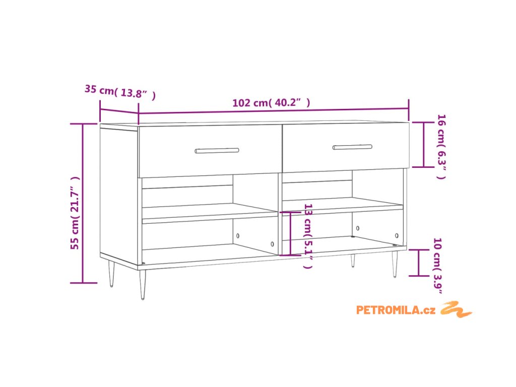 - Rozměry: 102 x 35 x 55 cm (Š x H x V)