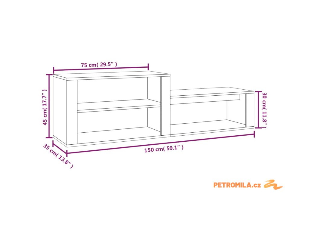 - Rozměry: 150 x 35 x 45 cm (Š x H x V)