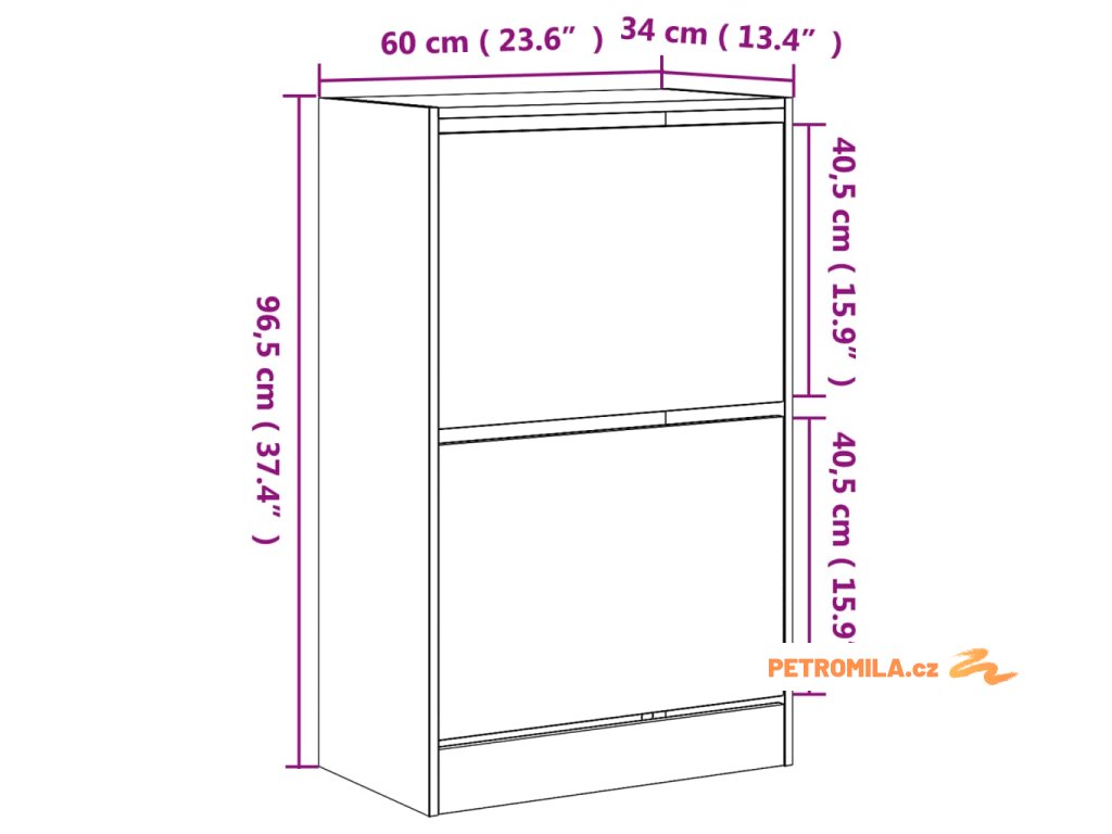 - Spousta úložného prostoru: Tento botník má 2 výklopné zásuvky se 2 patry každá s nich, poskytuje tedy dostatek prostoru pro přehledné uspořádání bot, kde je budete mít vždy po ruce.