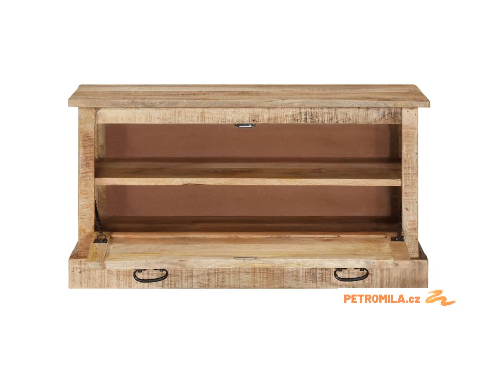 Se svými 2 velkými vnitřními přihrádkami je tato lavice praktickým místem pro přehledné uložení vašich bot. Předsíňová lavice je vyrobena z masivního mangovníkového dřeva, tvrdého dřeva s hustou strukturou, které unese značnou váhu a skvěle odolává opotřebení. Každý krok výroby je prováděn s maximální péčí, ať už se jedná o leštění nebo lakování.