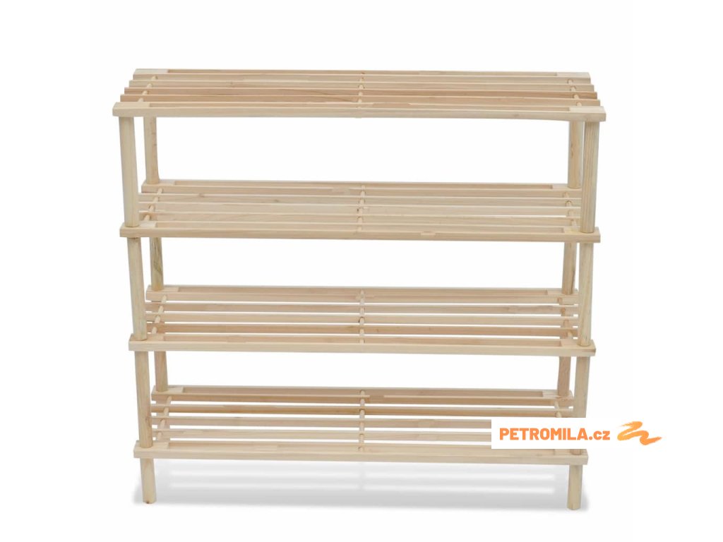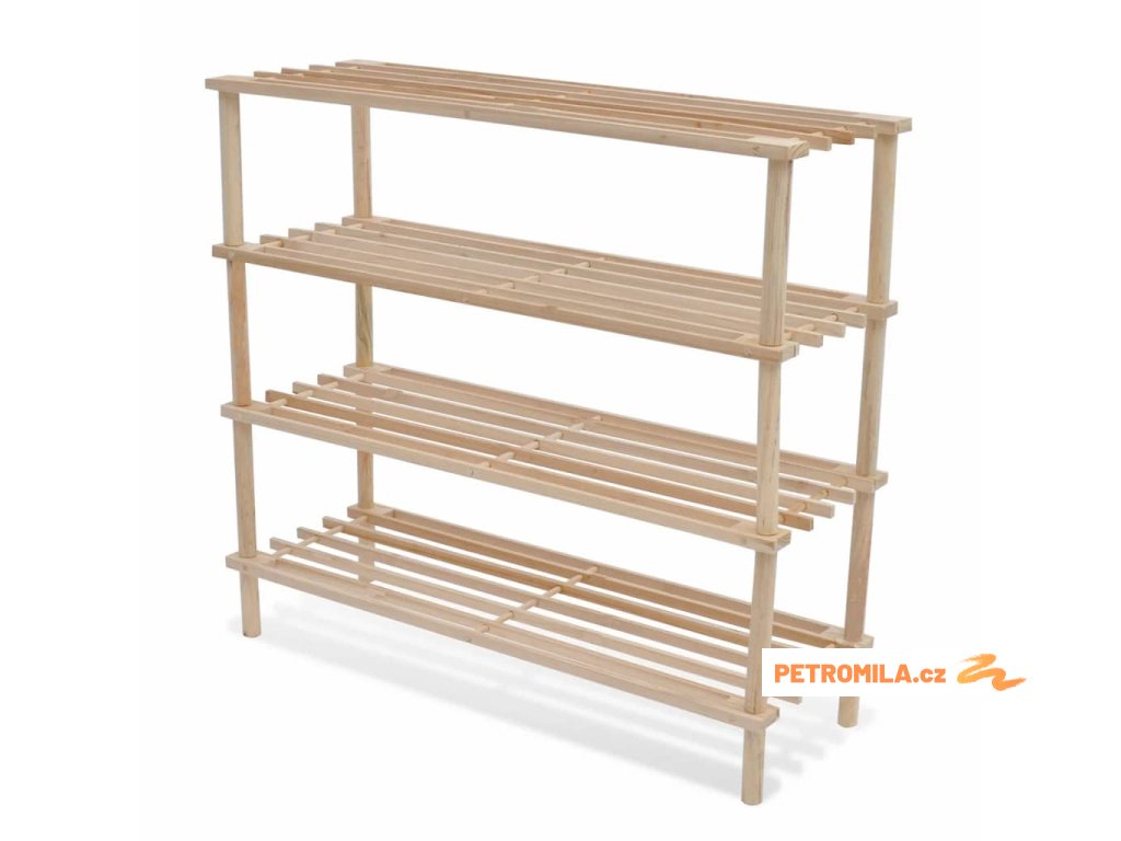 Do tohoto dřevěného botníku se 4 policemi si snadno a přehledně uložíte všechny své oblíbené boty, které už nemusí ležet poházené po podlaze. Botník můžete umístit ideálně poblíž vchodových dveří nebo kdekoliv chcete boty uschovat.