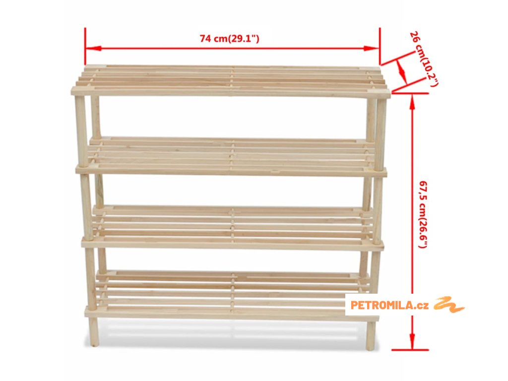 - Rozměry každého regálu na boty: 74 x 26 x 67,5 cm (D x Š x V)