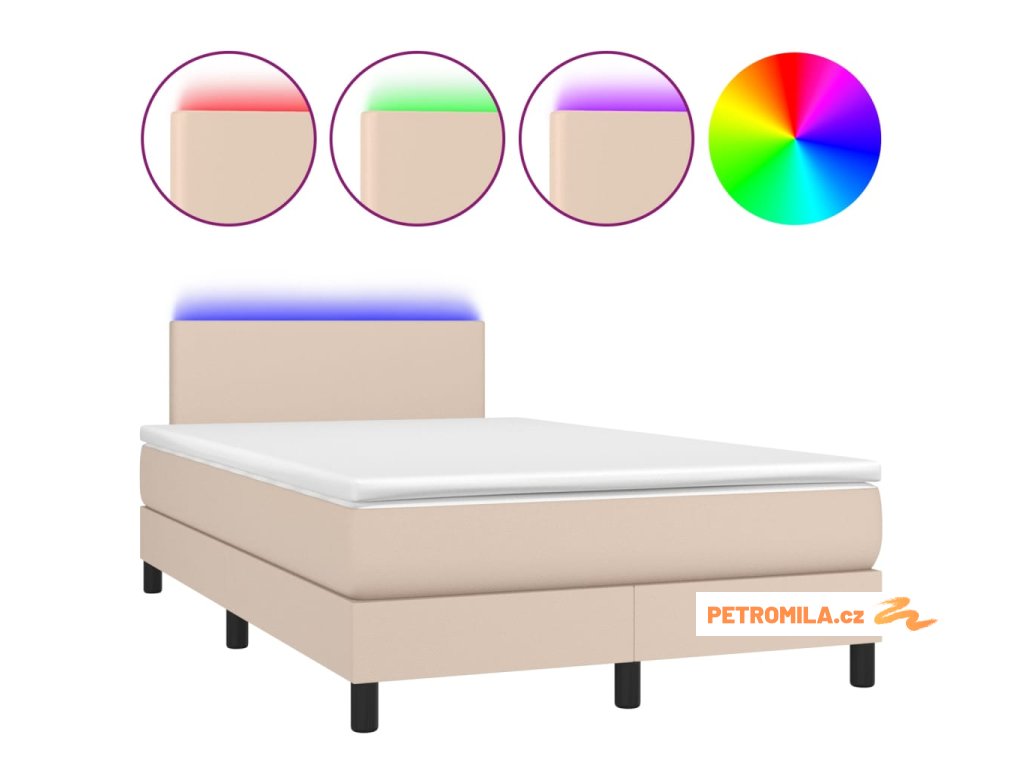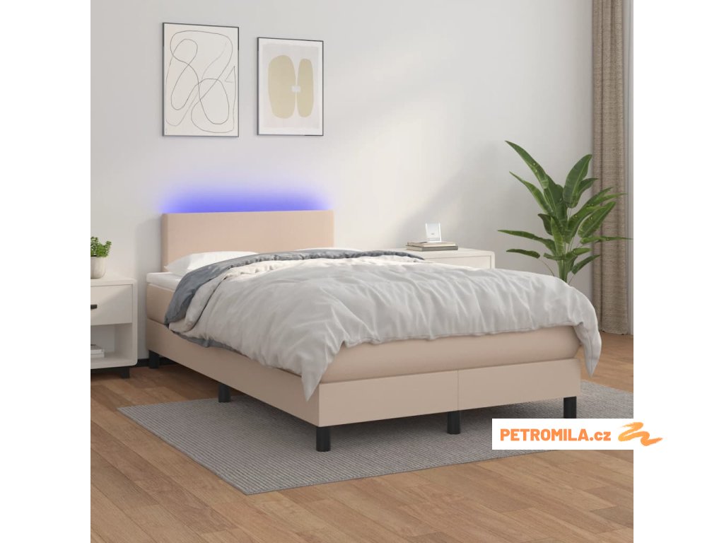 Box spring postel matrace a LED cappuccino 120x200cm umělá kůže
