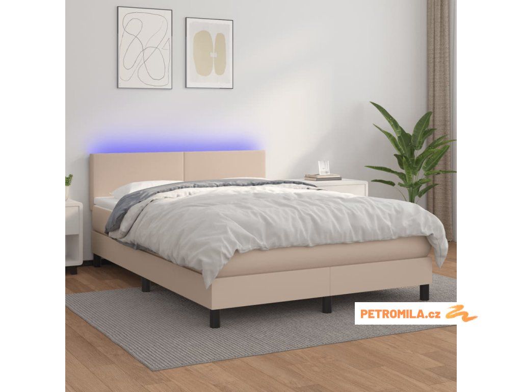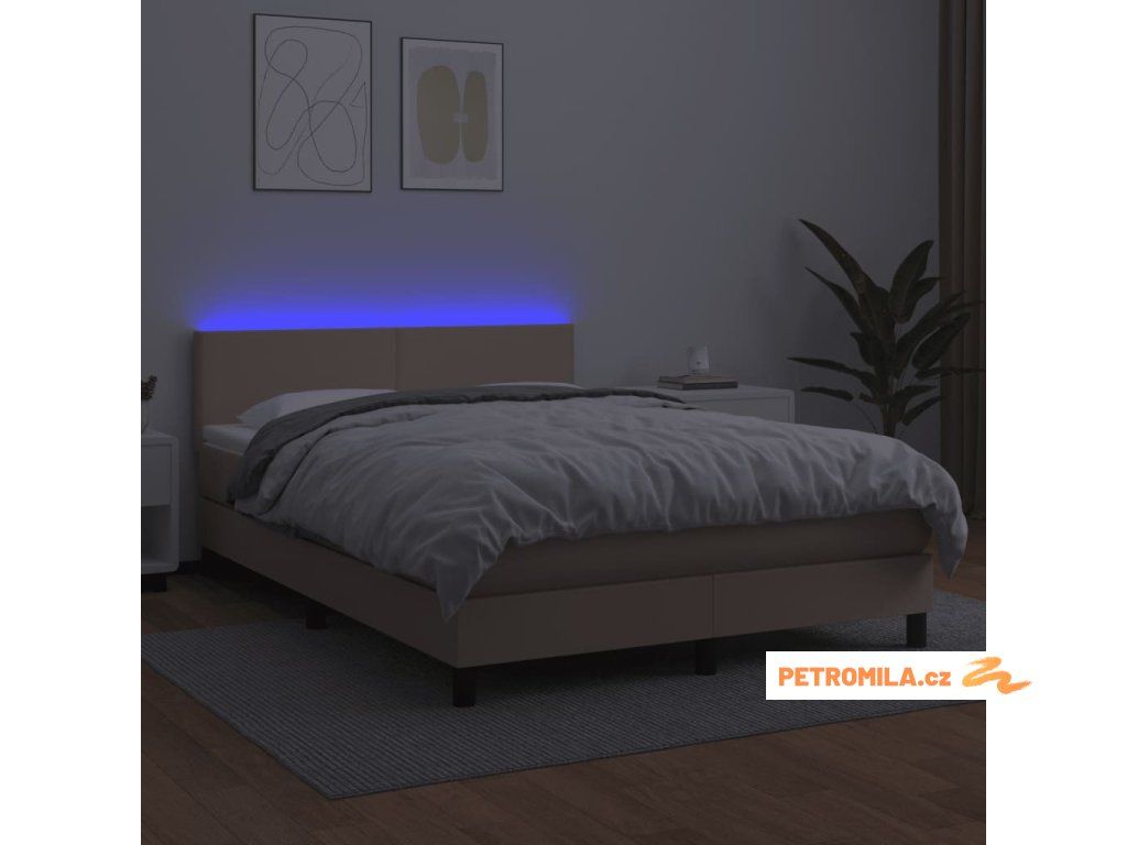 Box spring postel matrace a LED cappuccino 140x190cm umělá kůže