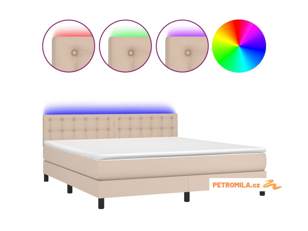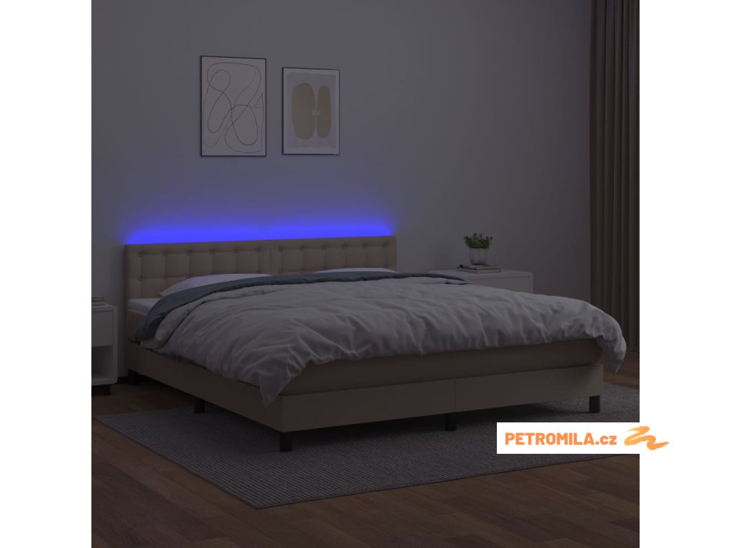 Box spring postel matrace a LED cappuccino 160x200cm umělá kůže