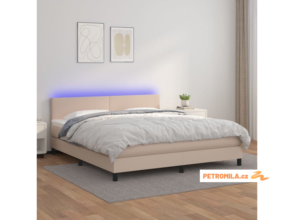 Box spring postel matrace a LED cappuccino 180x200cm umělá kůže