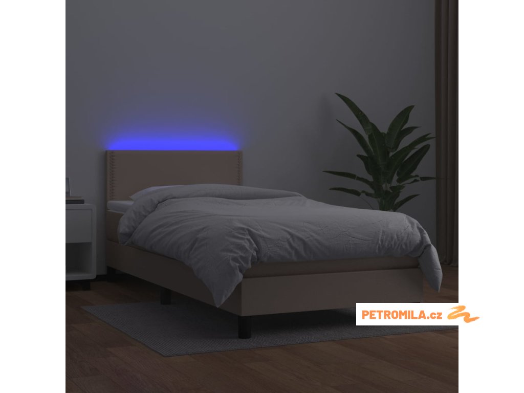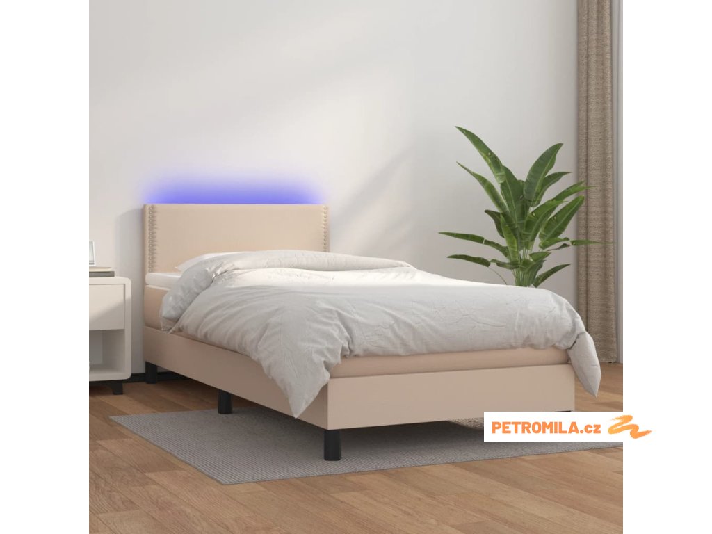 Box spring postel matrace a LED cappuccino 80x200 cm umělá kůže