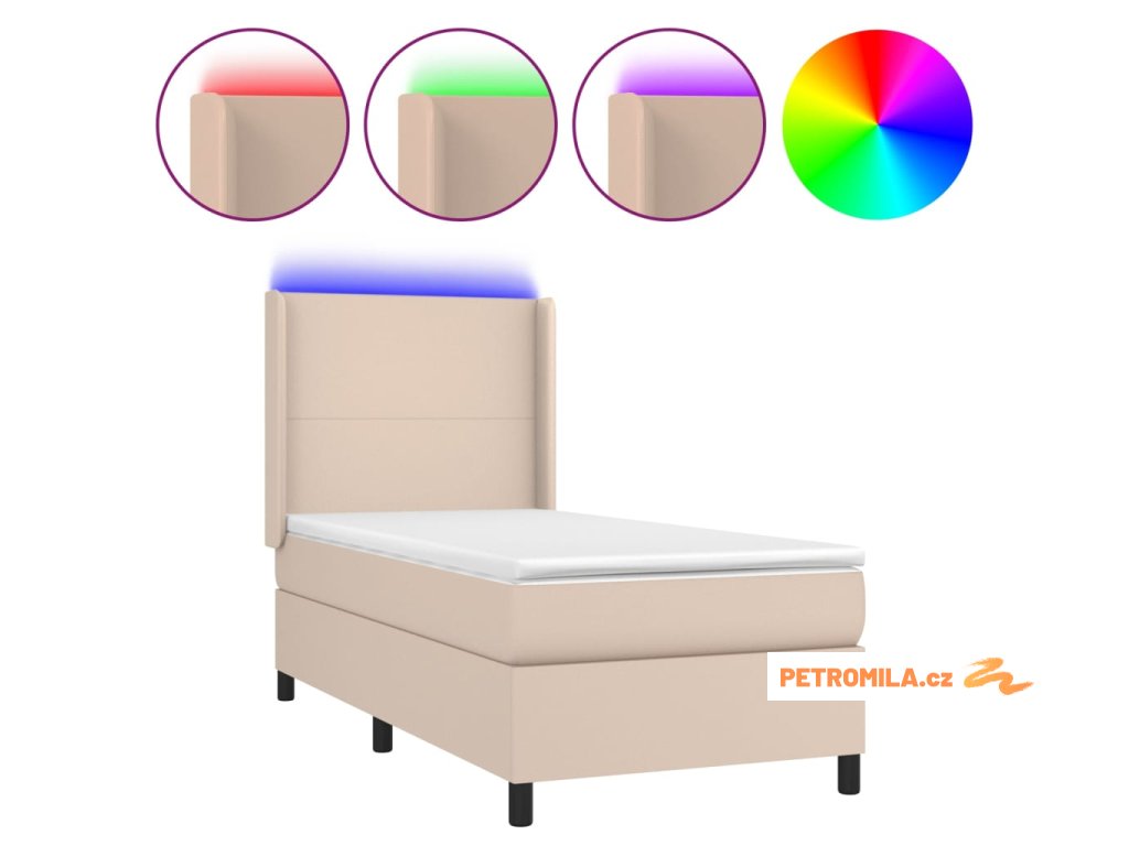 Box spring postel matrace a LED cappuccino 90x200 cm umělá kůže
