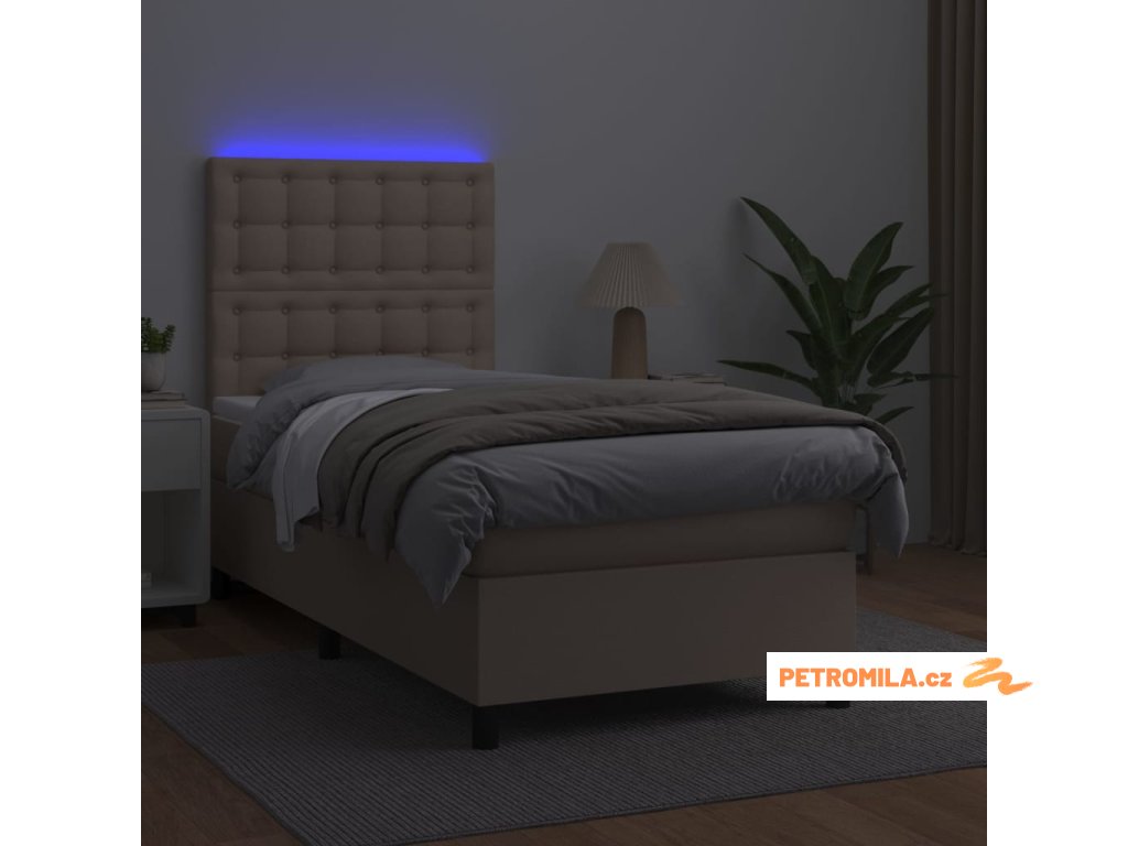 Box spring postel matrace a LED cappuccino 90x200 cm umělá kůže