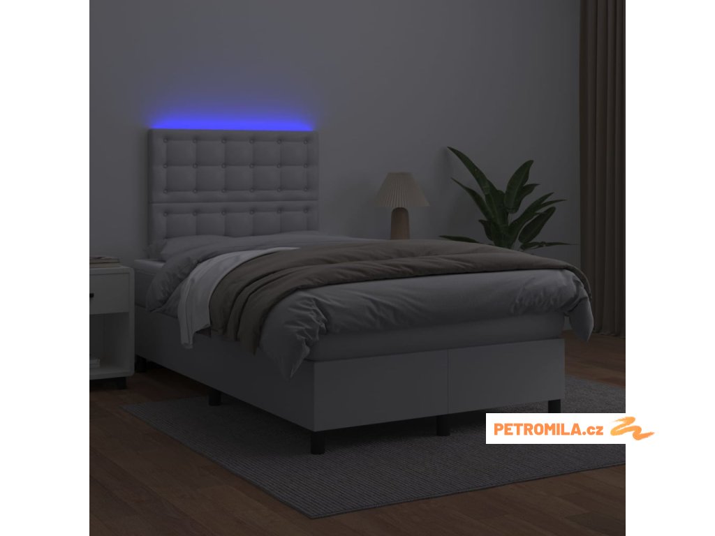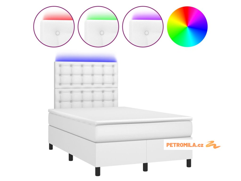 Box spring postel s matrací a LED bílá 120x200 cm umělá kůže