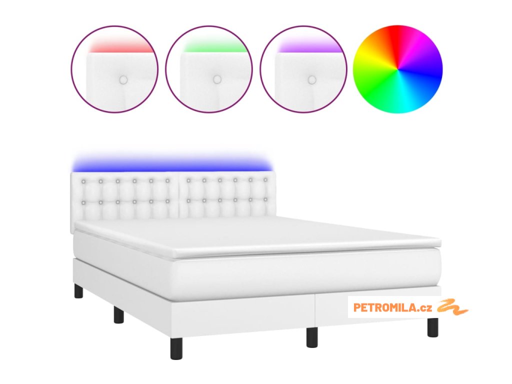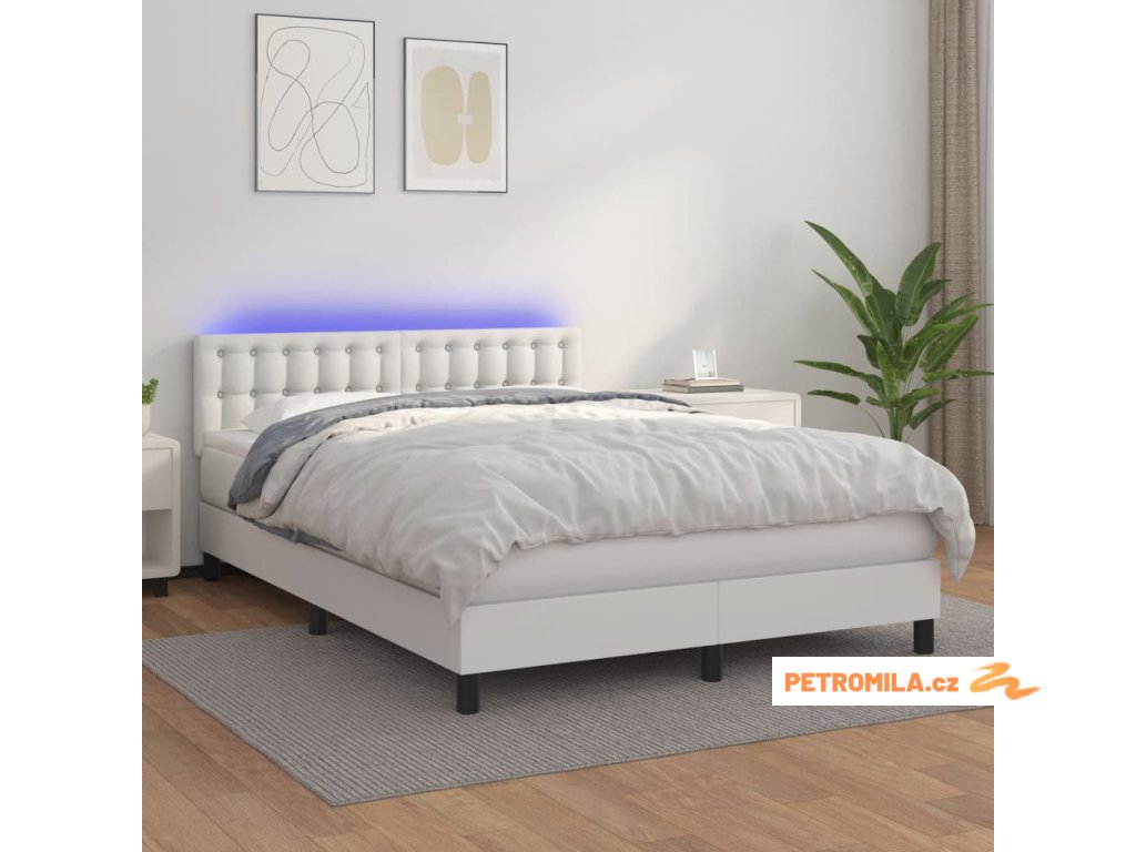 Box spring postel s matrací a LED bílá 140x190 cm umělá kůže
