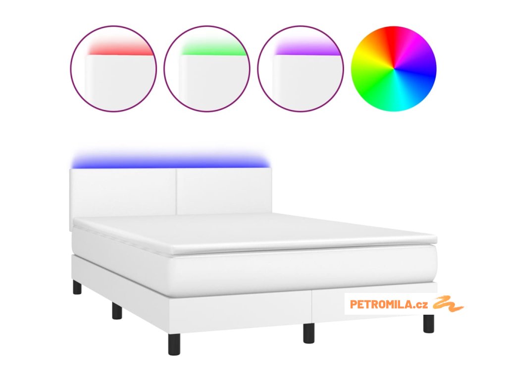Box spring postel s matrací a LED bílá 140x200 cm umělá kůže