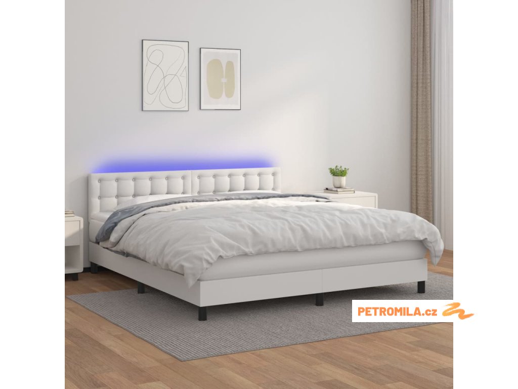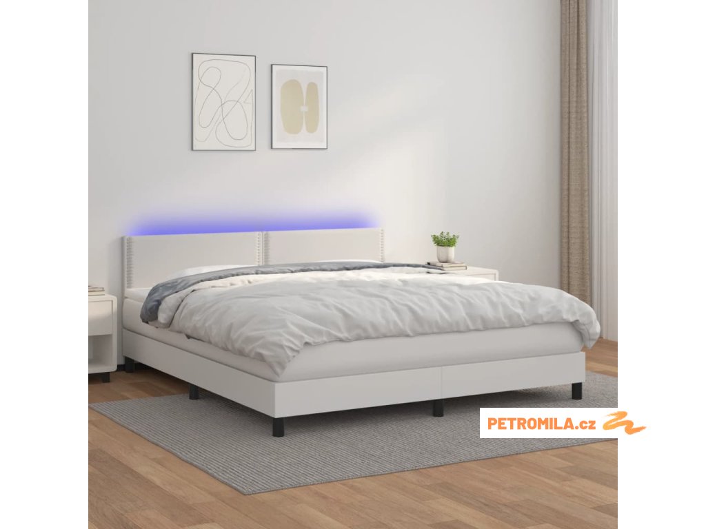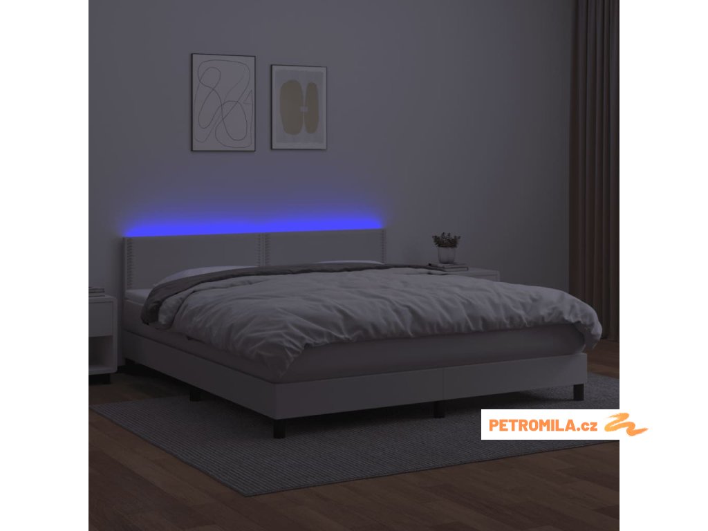 Box spring postel s matrací a LED bílá 180x200 cm umělá kůže