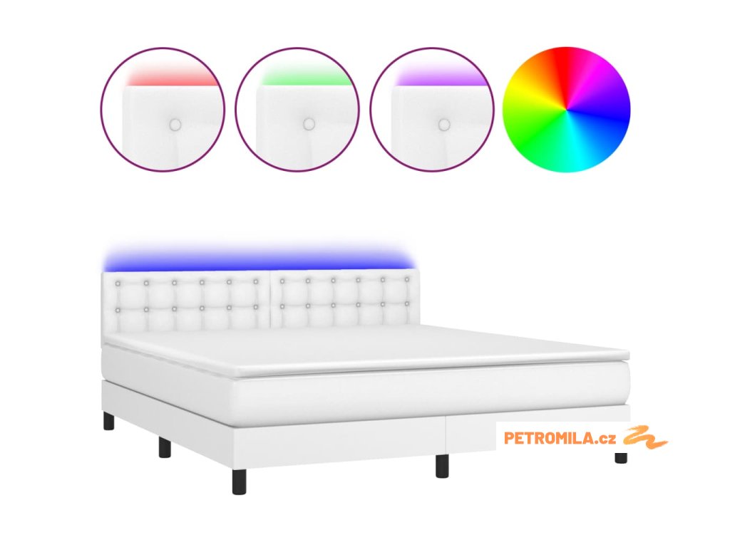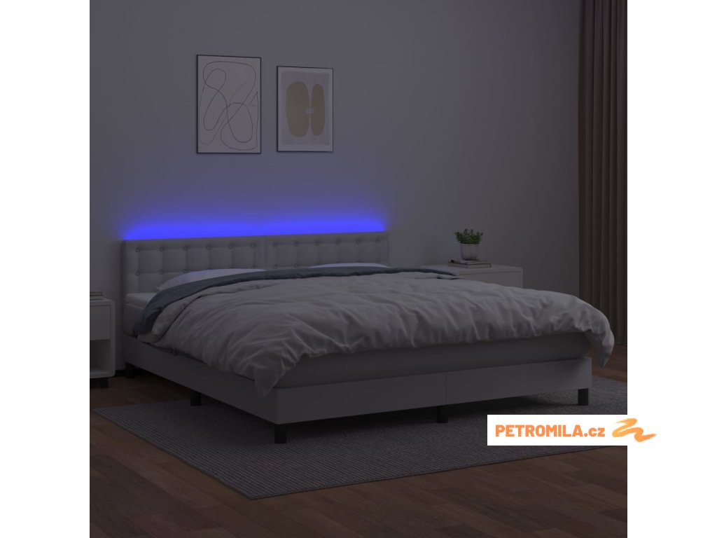 Box spring postel s matrací a LED bílá 180x200 cm umělá kůže