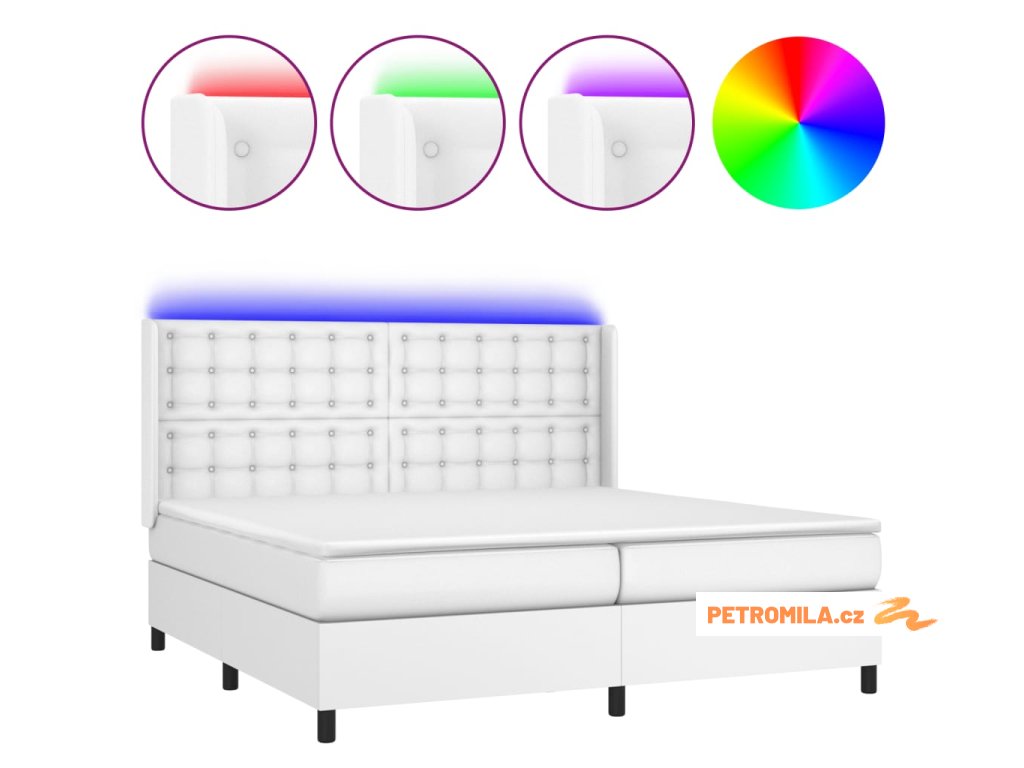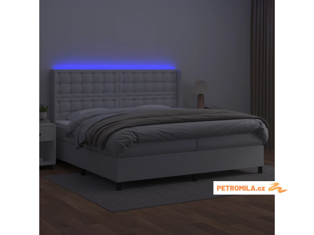 Box spring postel s matrací a LED bílá 200x200 cm umělá kůže