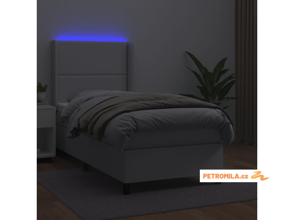 Box spring postel s matrací a LED bílá 90x190 cm umělá kůže