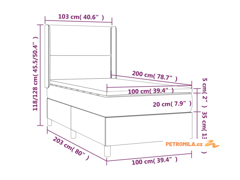 - Celkové rozměry: 203 x 103 x 118/128 cm (D x Š x V)