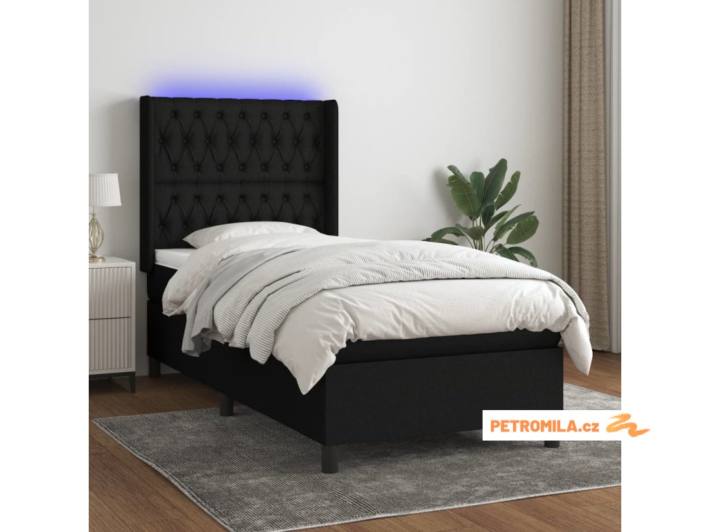Box spring postel s matrací a LED černá 100x200 cm textil