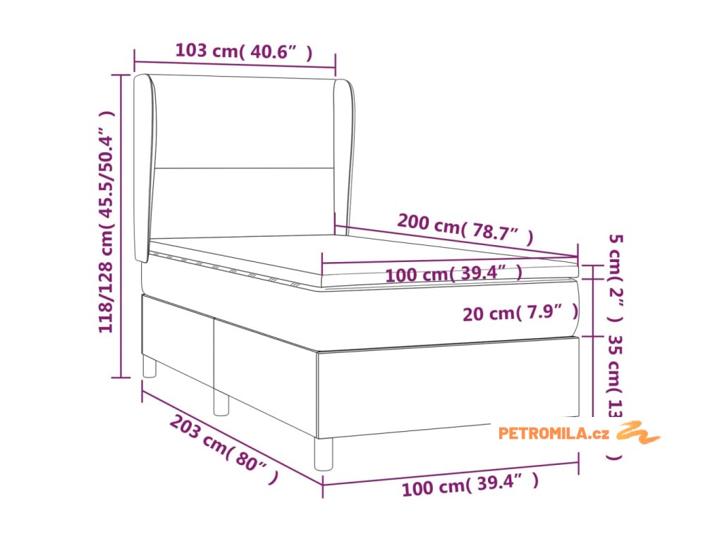 - Celkové rozměry: 203 x 103 x 118/128 cm (D x Š x V)