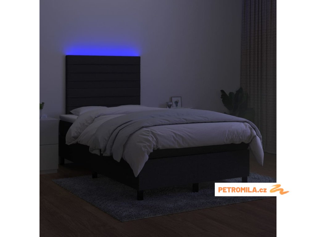 Box spring postel s matrací a LED černá 120 x 200 cm textil