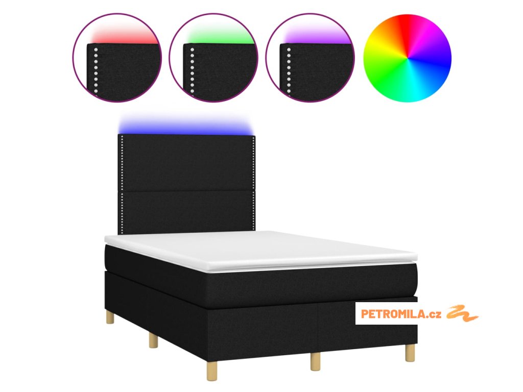 Box spring postel s matrací a LED černá 120 x 200 cm textil