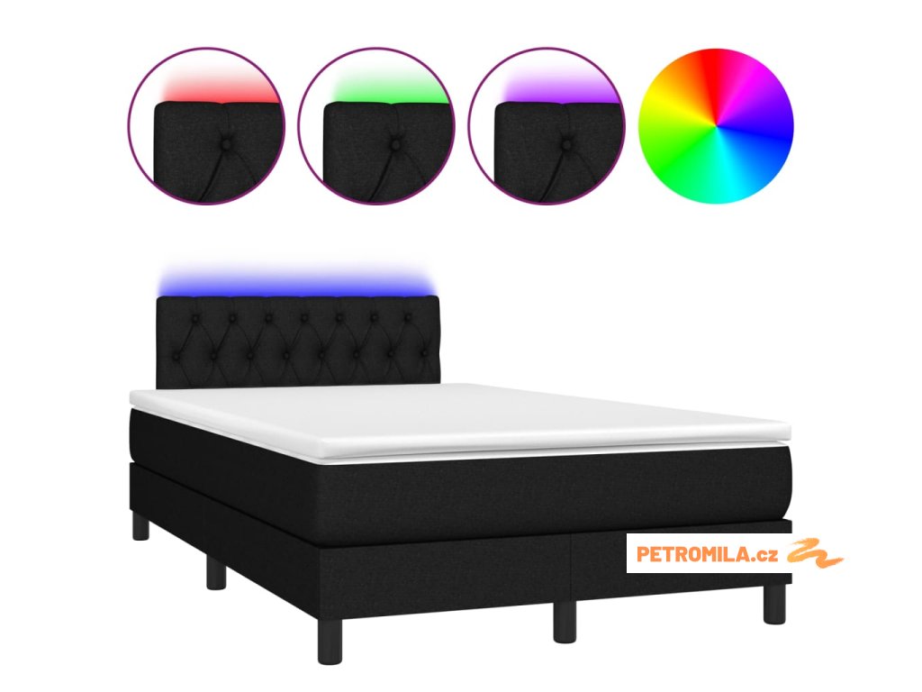 Box spring postel s matrací a LED černá 120 x 200 cm textil