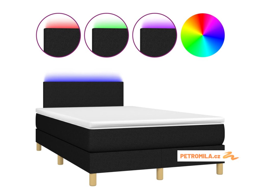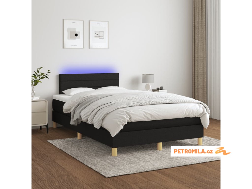 Box spring postel s matrací a LED černá 120 x 200 cm textil