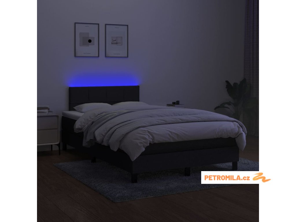 Box spring postel s matrací a LED černá 120 x 200 cm textil