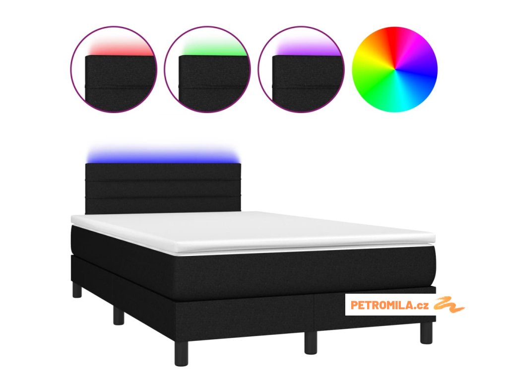 Box spring postel s matrací a LED černá 120 x 200 cm textil
