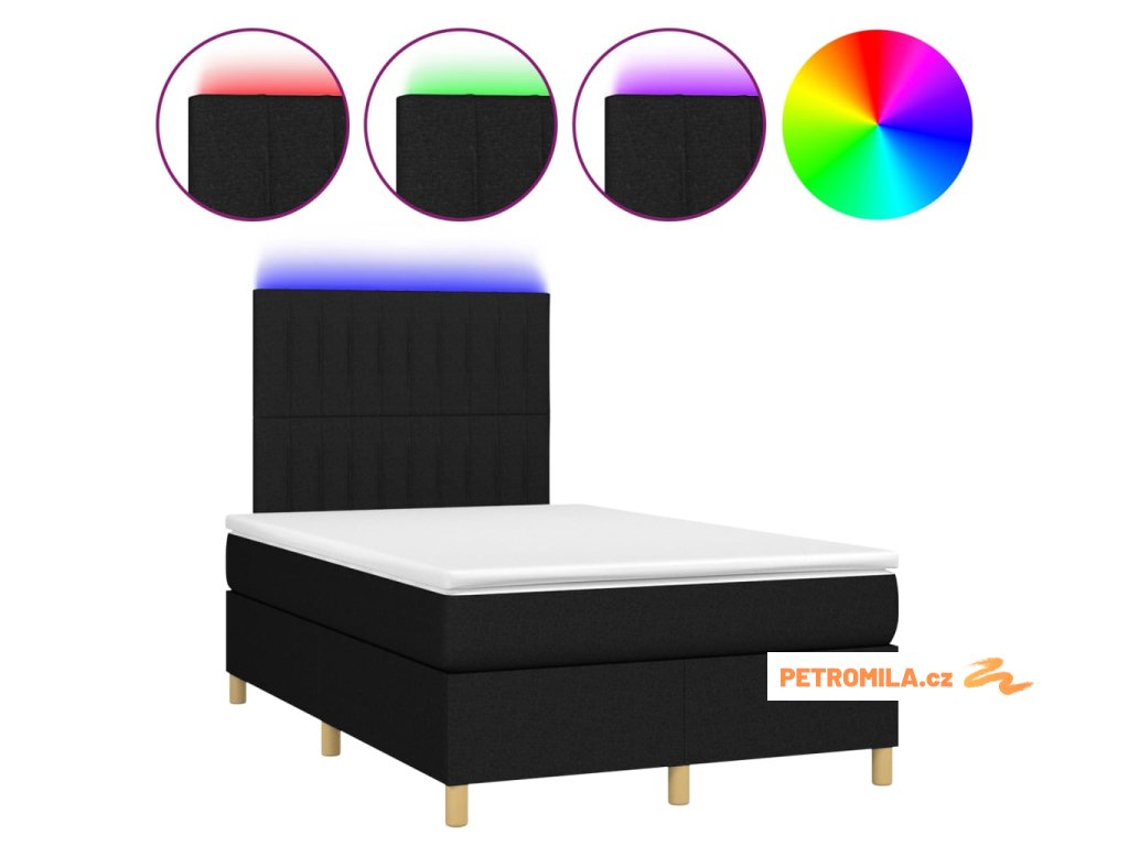 Box spring postel s matrací a LED černá 120 x 200 cm textil