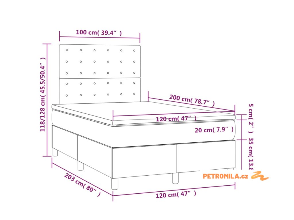 - Rozměry: 120 x 200 x 20 cm (Š x D x V)