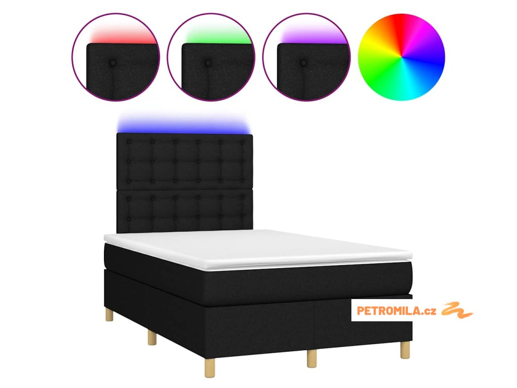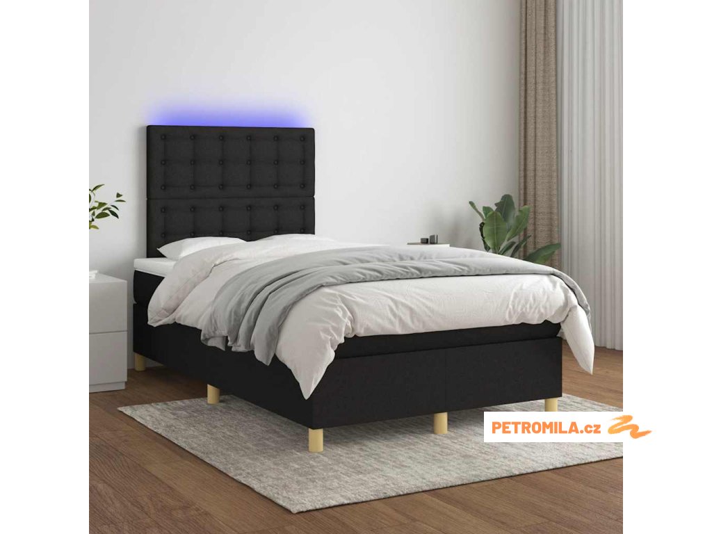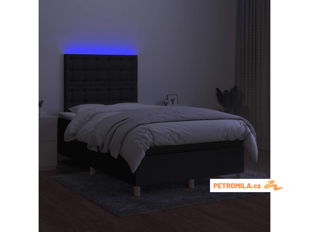 Box spring postel s matrací a LED černá 120x190 cm textil