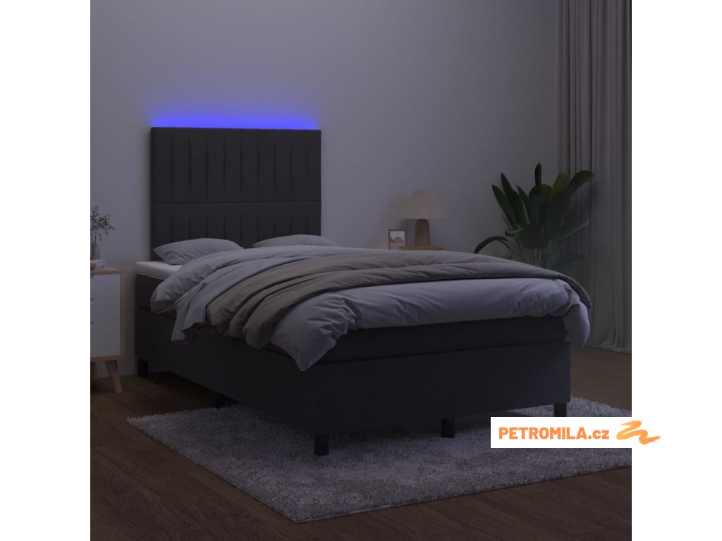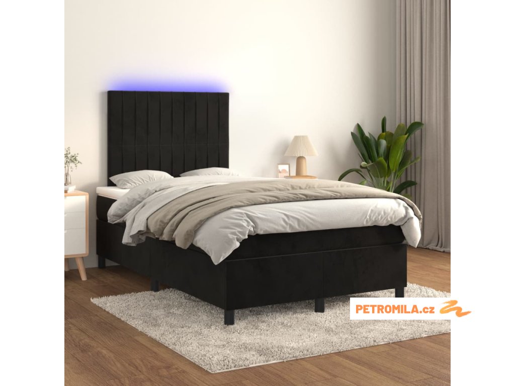 Box spring postel s matrací a LED černá 120x200 cm samet