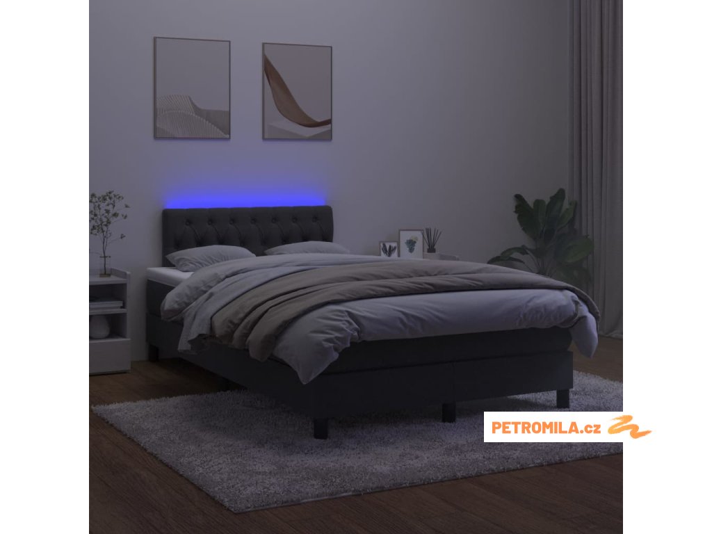 Box spring postel s matrací a LED černá 120x200 cm samet