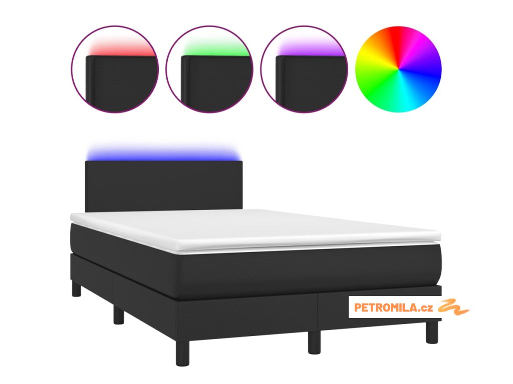 Box spring postel s matrací a LED černá 120x200 cm umělá kůže