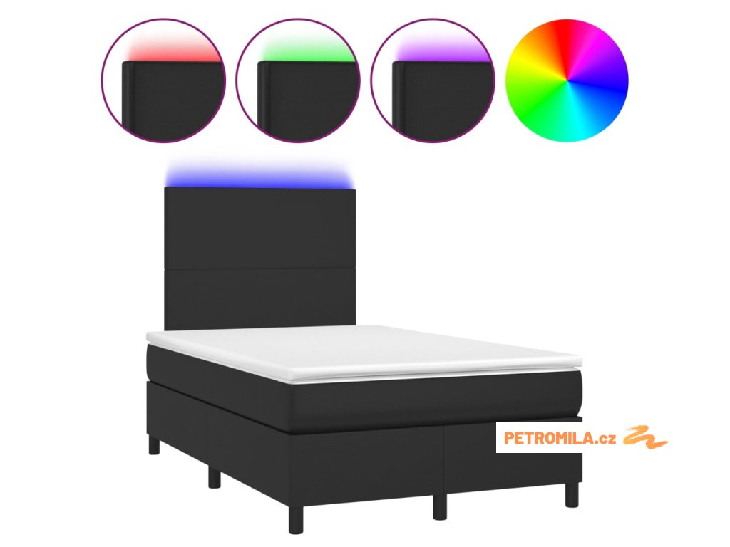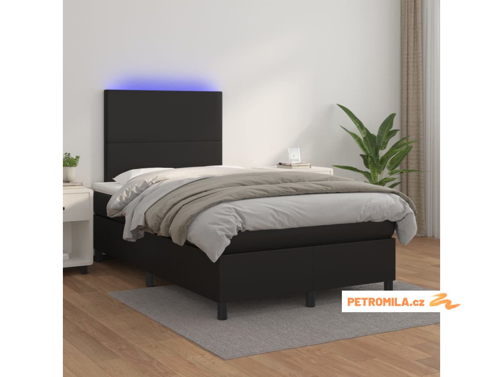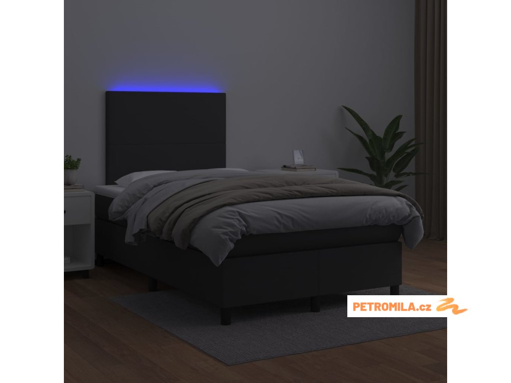 Box spring postel s matrací a LED černá 120x200 cm umělá kůže