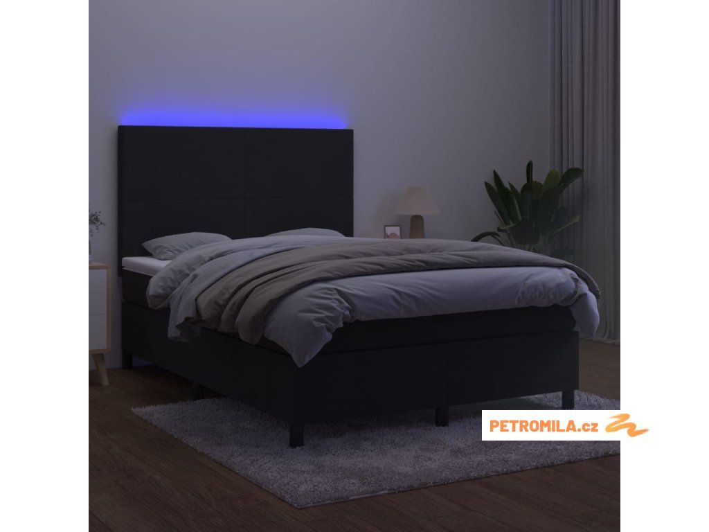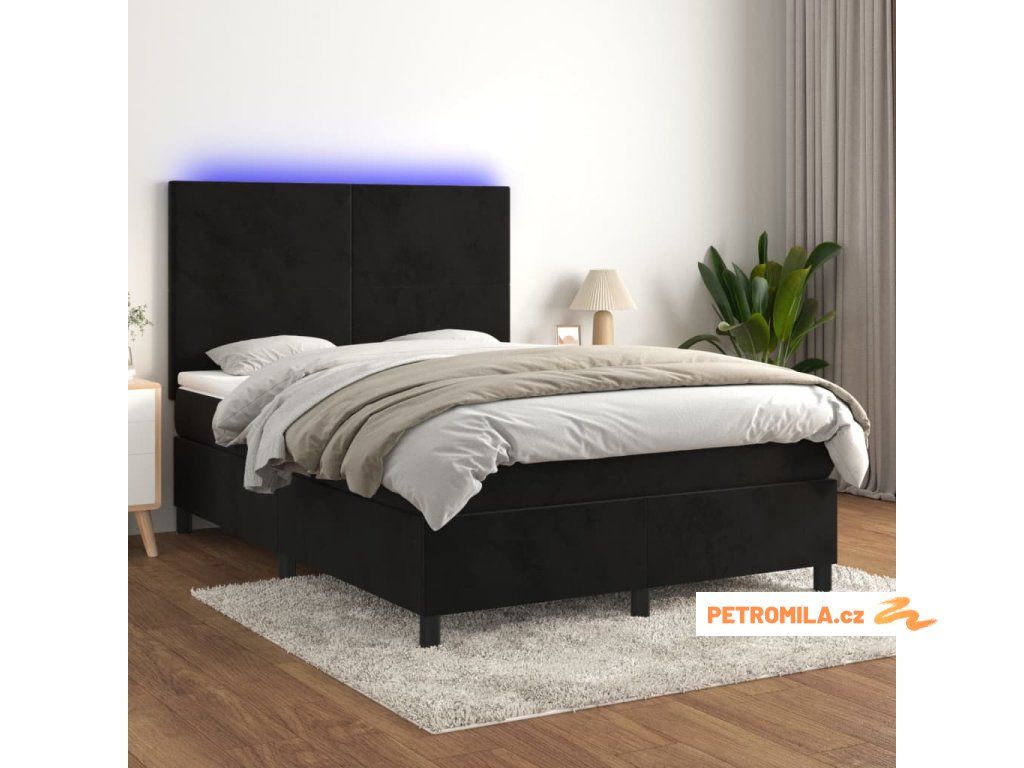 Box spring postel s matrací a LED černá 140x190 cm samet