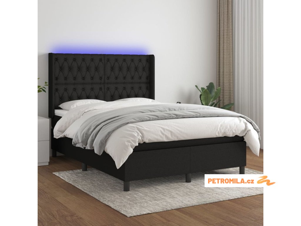 Box spring postel s matrací a LED černá 140x190 cm textil